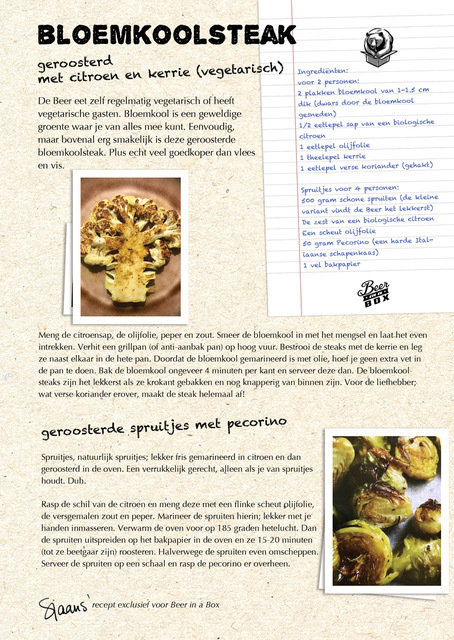 De Beer eet zelf regelmatig vegetarisch of heeft vegetarische gasten. Bloemkool is een geweldige groente waar je van alles mee kunt. Eenvoudig, maar bovenal erg smakelijk is deze geroosterde bloemkoolsteak. Plus echt veel goedkoper dan vlees en vis.