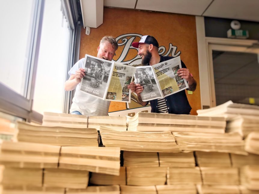Een mooi voorbeeld van ‘op het goede moment op de juiste plaats verschijnen’, vindt het viertal. “En zo voelt het nog steeds,” stelt Ron. “In de maanden van schetsen, bouwen en schaven aan het nieuwe medium hebben we ook iets van die schwung overgenomen. En als het goed is, leest de klant dat terug in de nieuwe krant van de Beer: de Grizzly Gazet.”